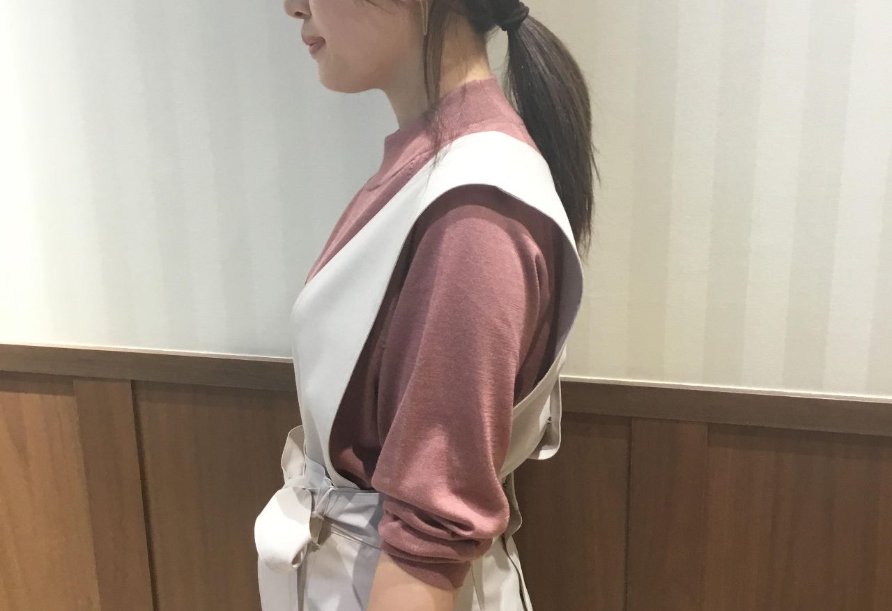 ピンクのニットは女性らしく、可愛らしい印象になりますね♪