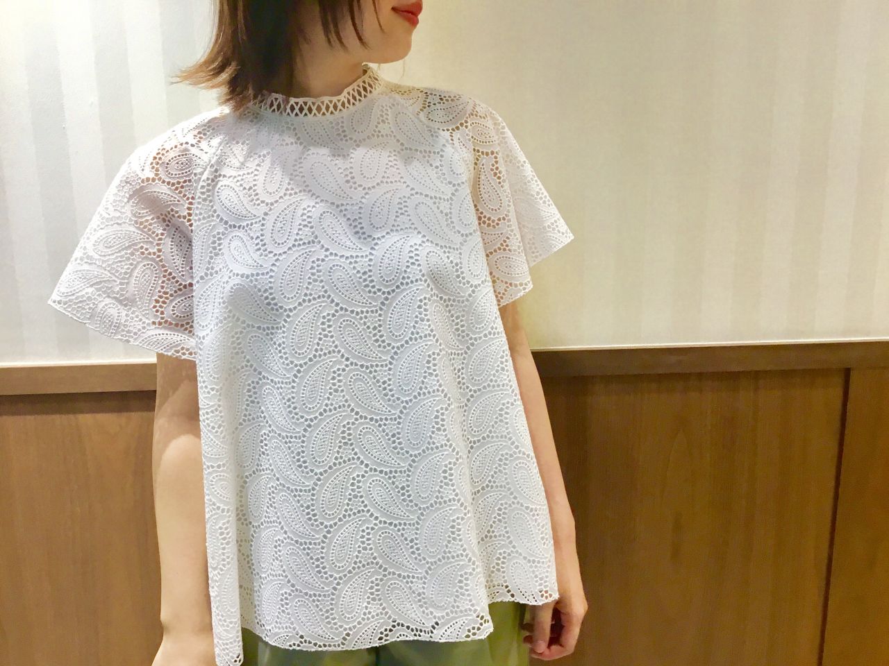 ペイズリー柄の総柄レースが新鮮なフレアブラウス。