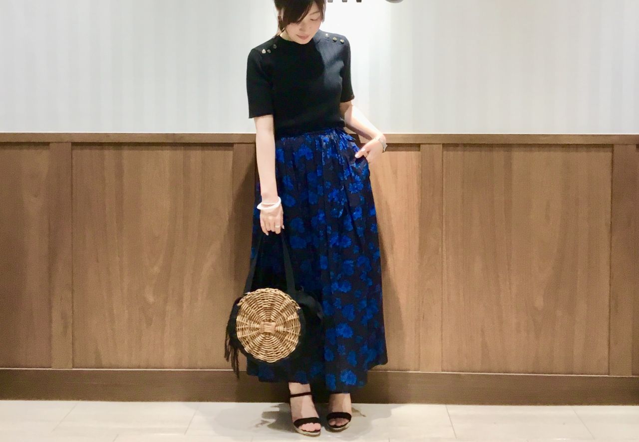 シックな色使いのロングスカートはトップスも黒で引き締め!