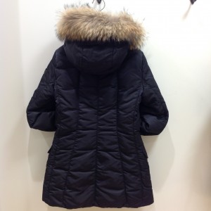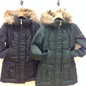 縦に入ったキルティング効果で ダウンとは思えないくらいすっきりとしています。 また冷気を防ぐ袖口の2重構造など機能的にも万全な仕様。