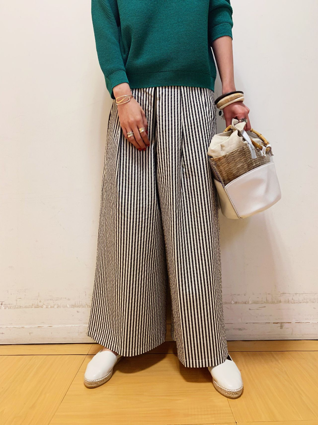 ストライプ柄が目を惹くデザイン。