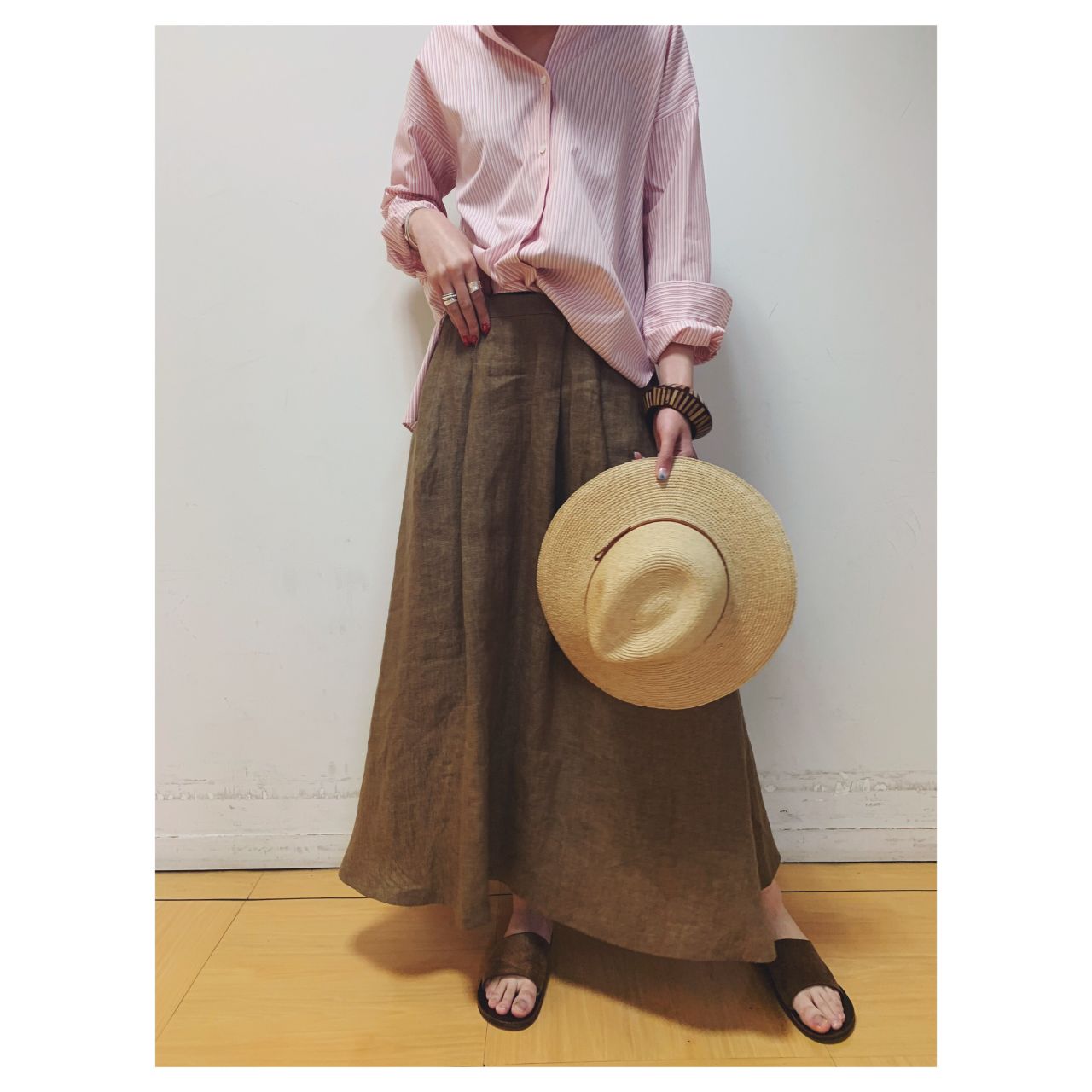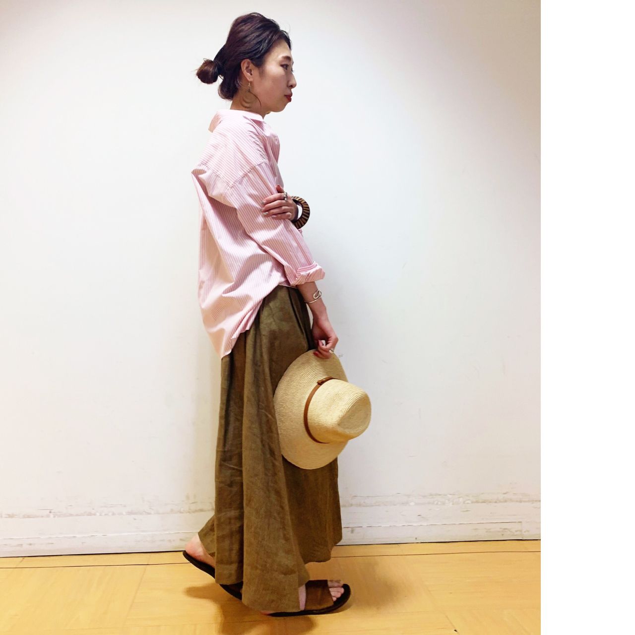 麻生地をふんだんに使用したスカート。