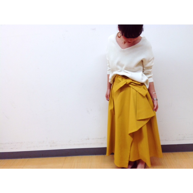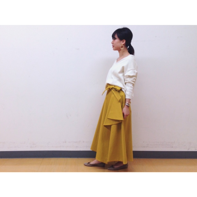 たっぷりの生地を使用した、ボリューム感のあるスカート。
