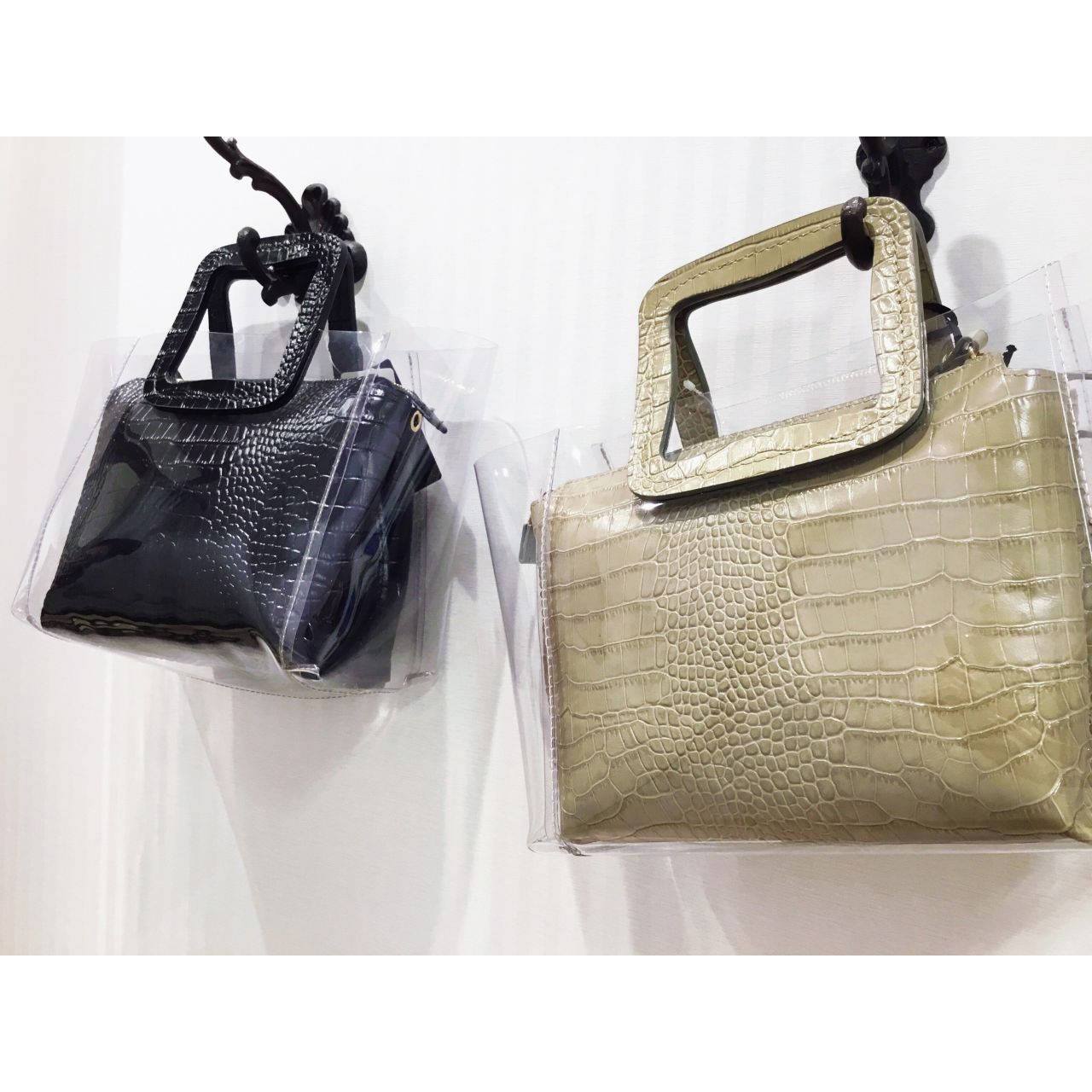 PVC素材のバッグで清涼感をプラス。