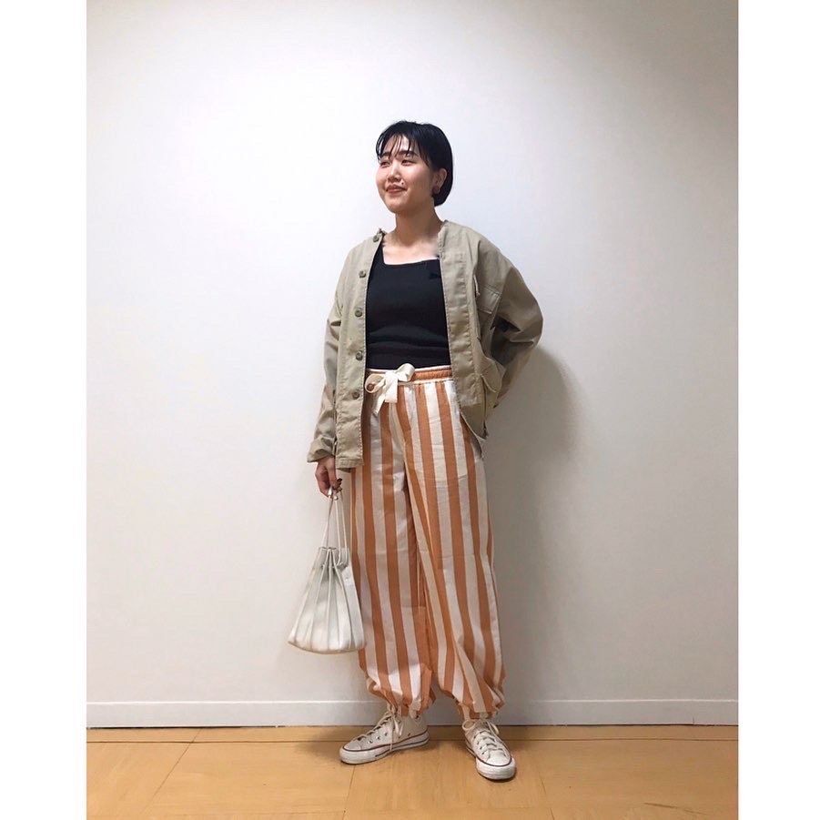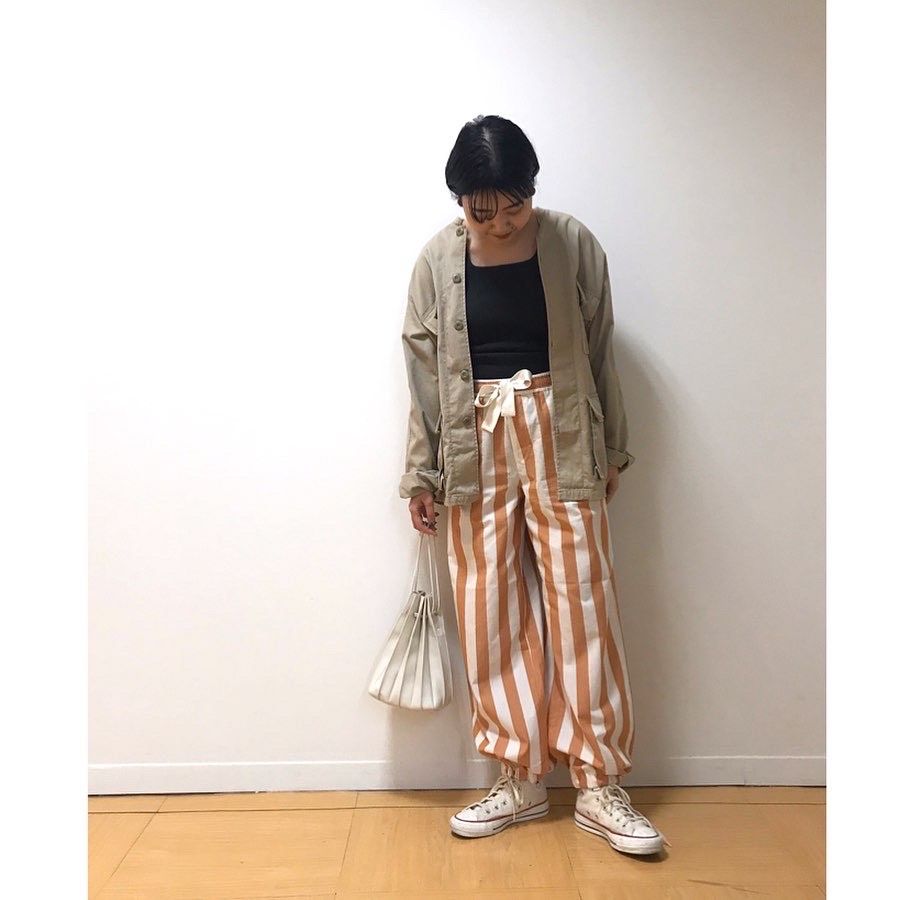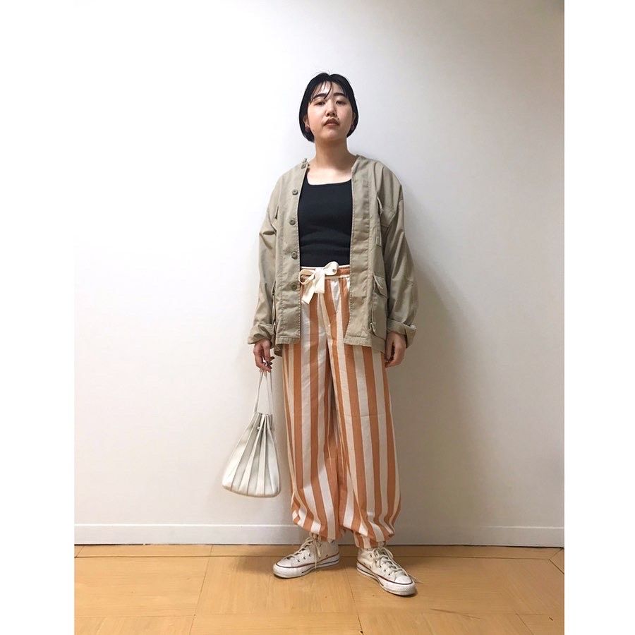 太めのストライプが個性的な印象に。