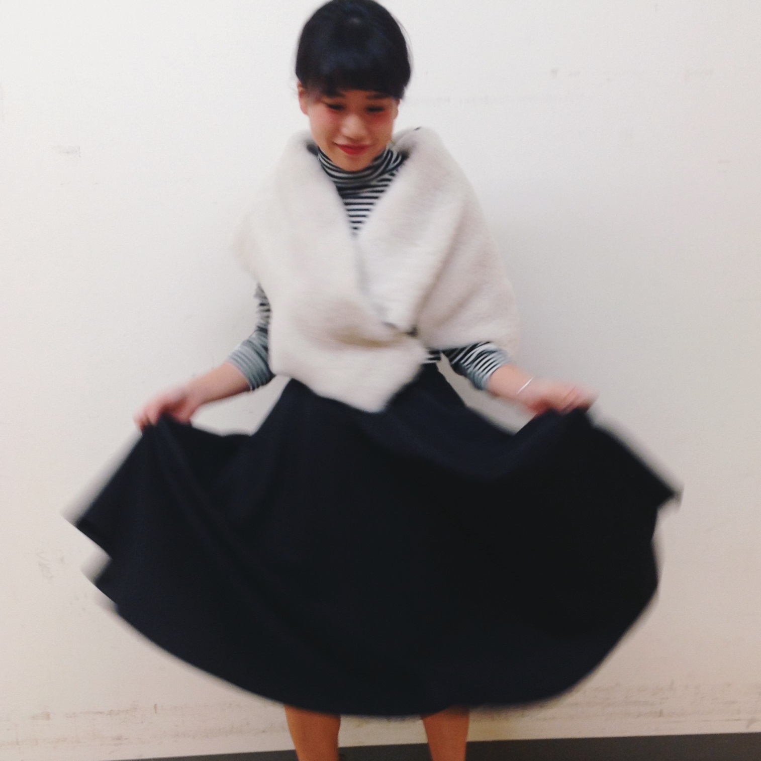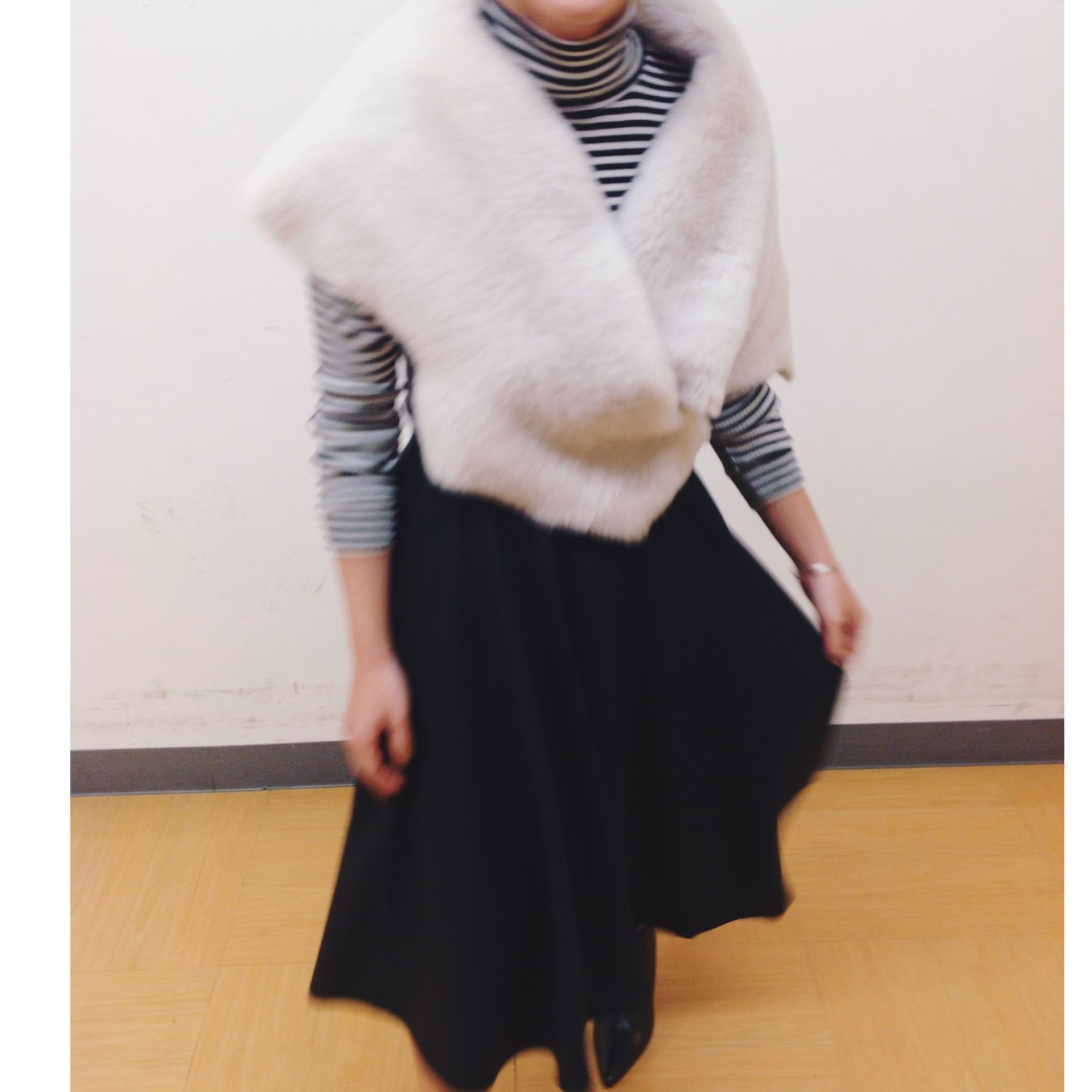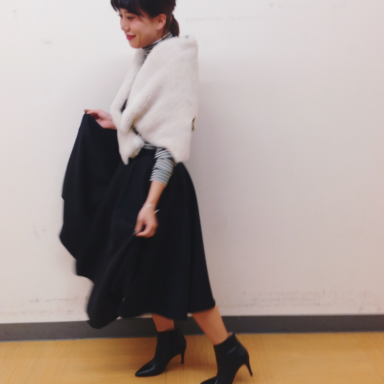 膝の隠れる長めの丈感で、ショートブーツで合わせたり、