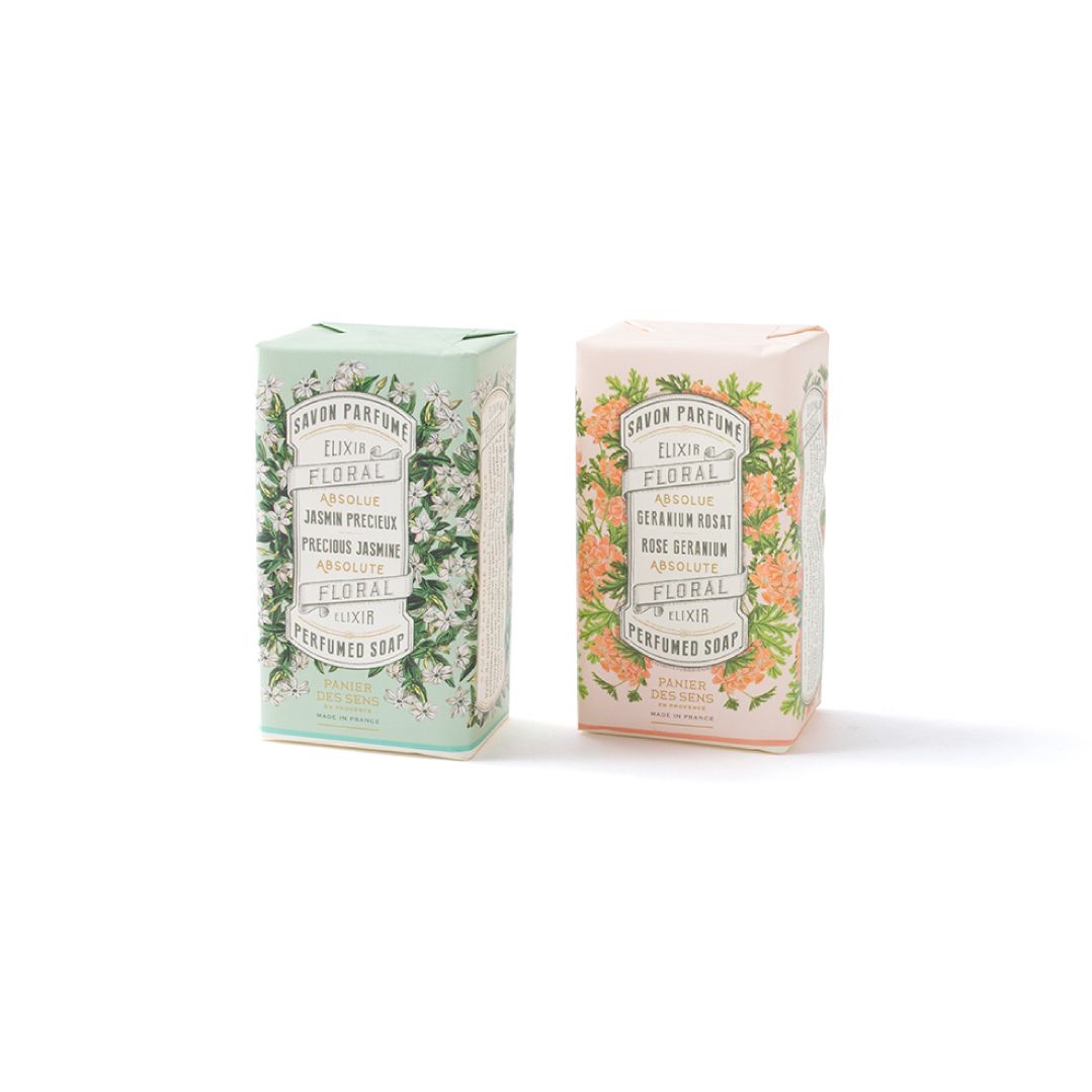 ジャスミン、ローズゼラニウムの2種類よりお選びいただけるパフュームドソープとなっております。