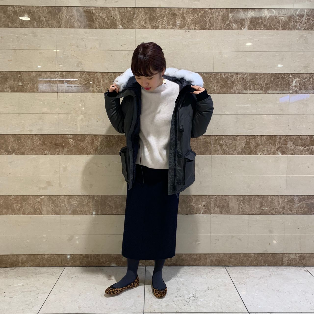 ワイドでボリューミーなファーが顔周りを華やかにしてくれます。
