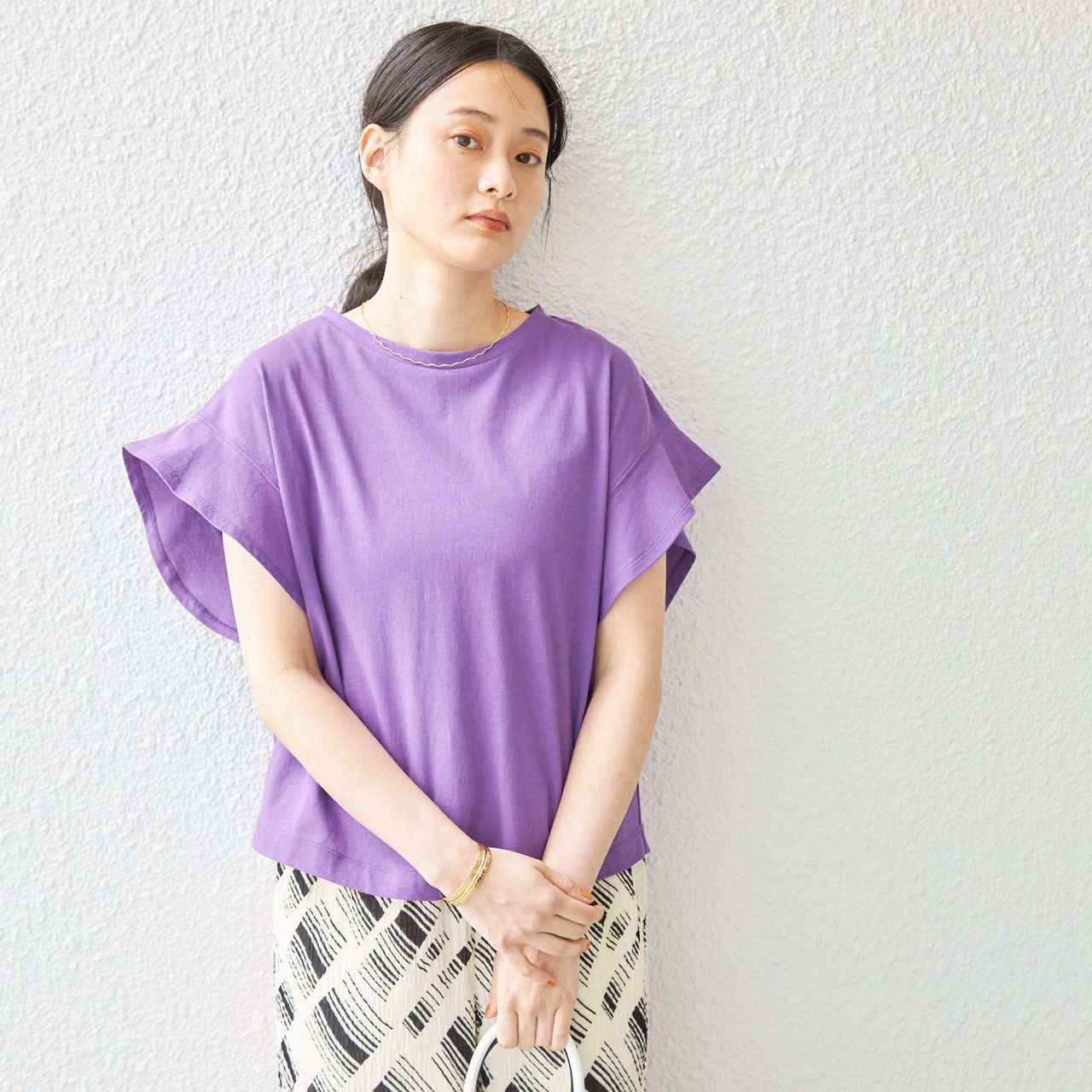 さりげなく腕周りをカバーしてくれるのも嬉しいポイント◎