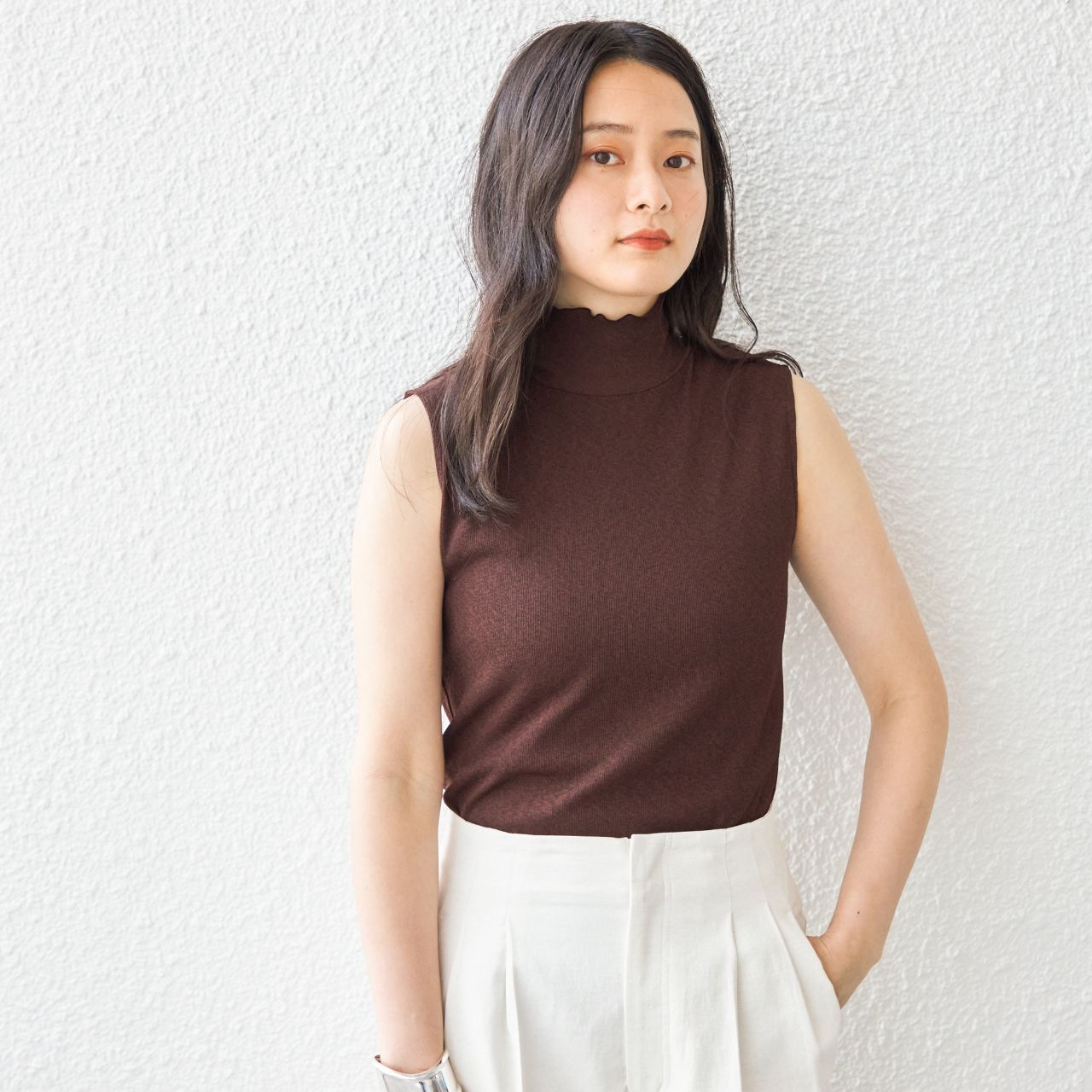 〈手洗い可能〉ドライテレコハイネックノースリーブ23SS ¥6,930(税込) |