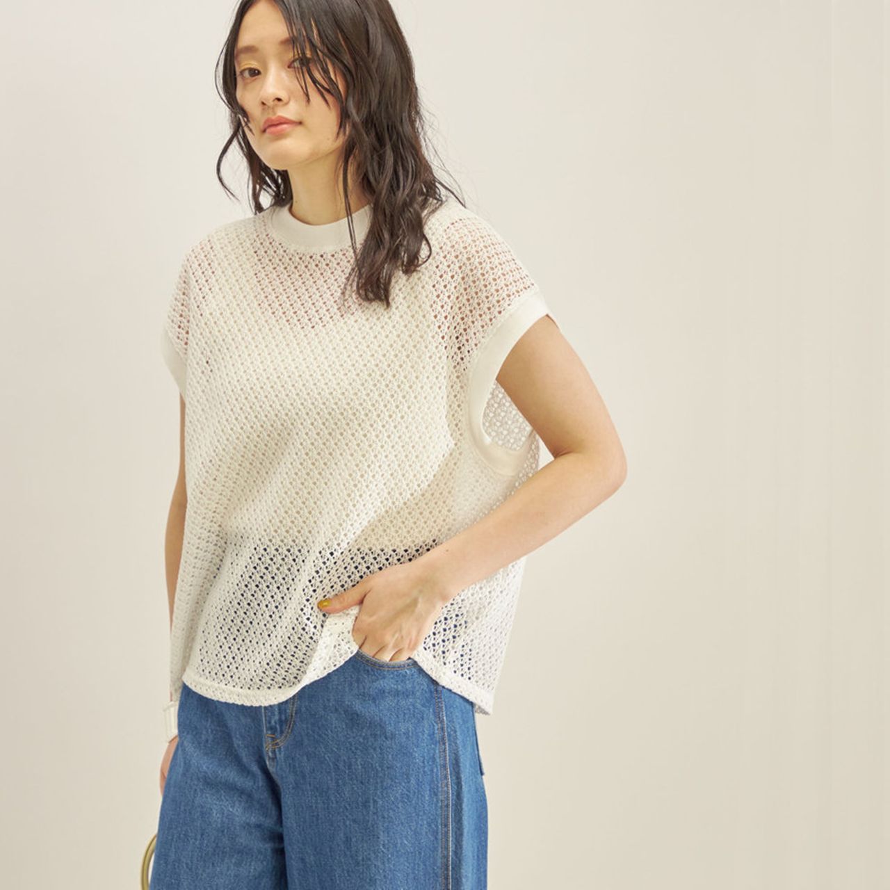 程よく透け感があるので一枚着はもちろん、お手持ちのワンピースのインに持ってくるだけで今気分に♪