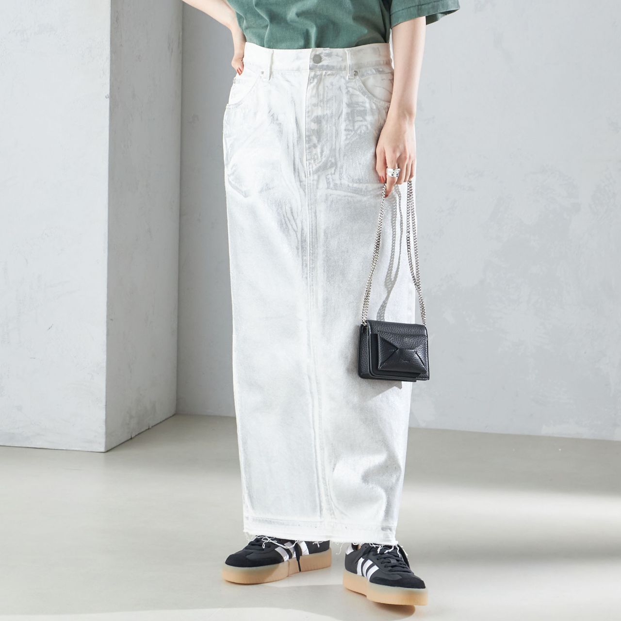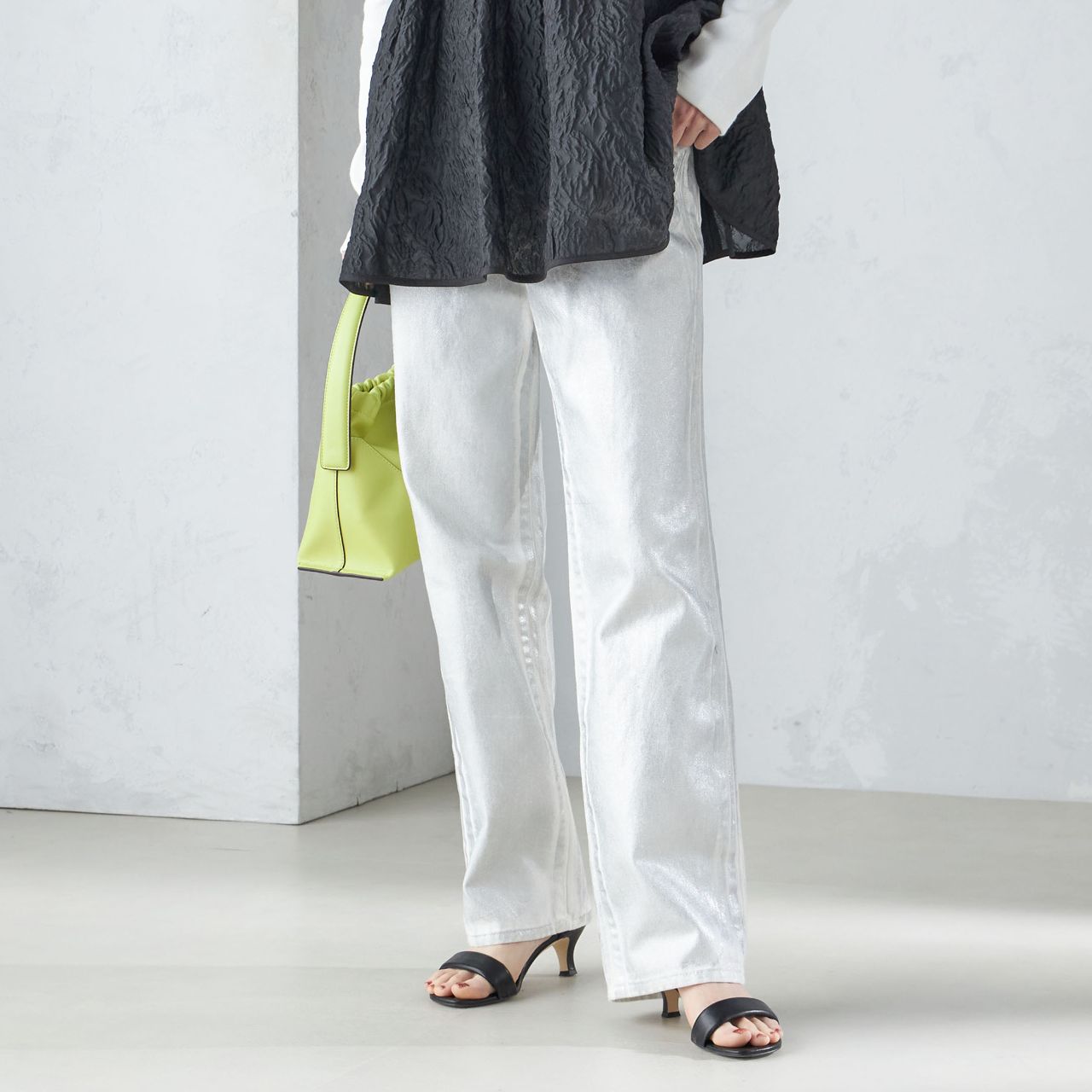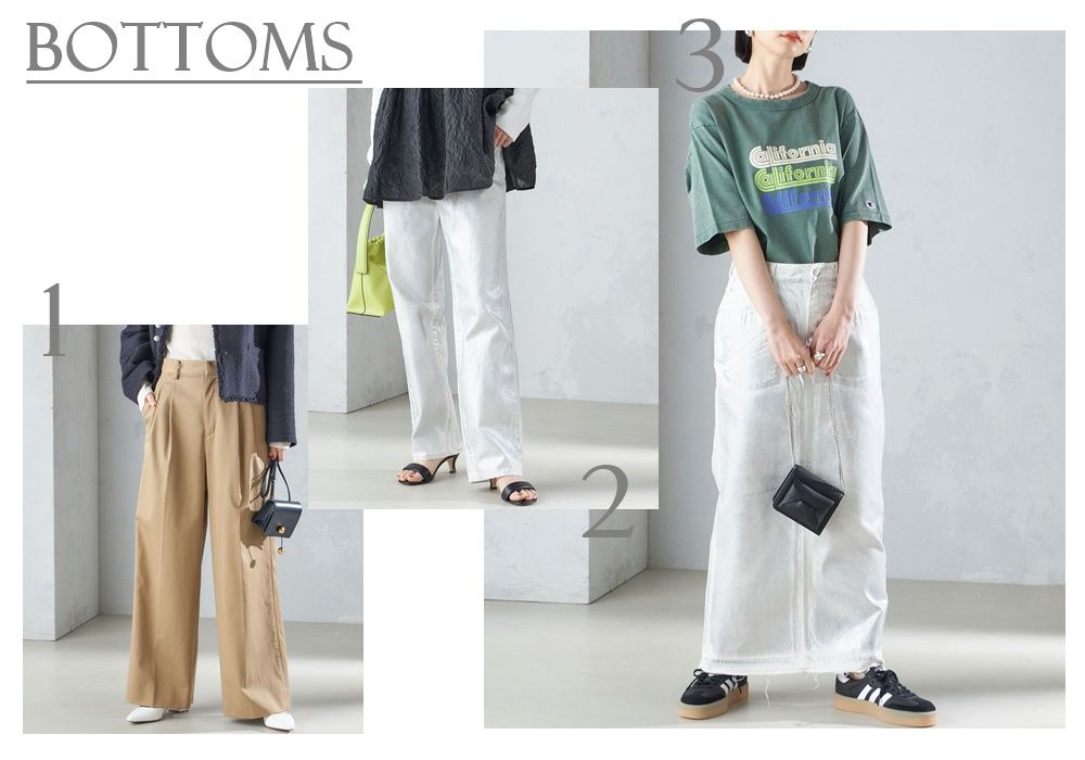 メタリックをボトムスに落とし込むことで、デイリーからトレンドコーデまで幅広いスタイリングで活躍してくれます♪