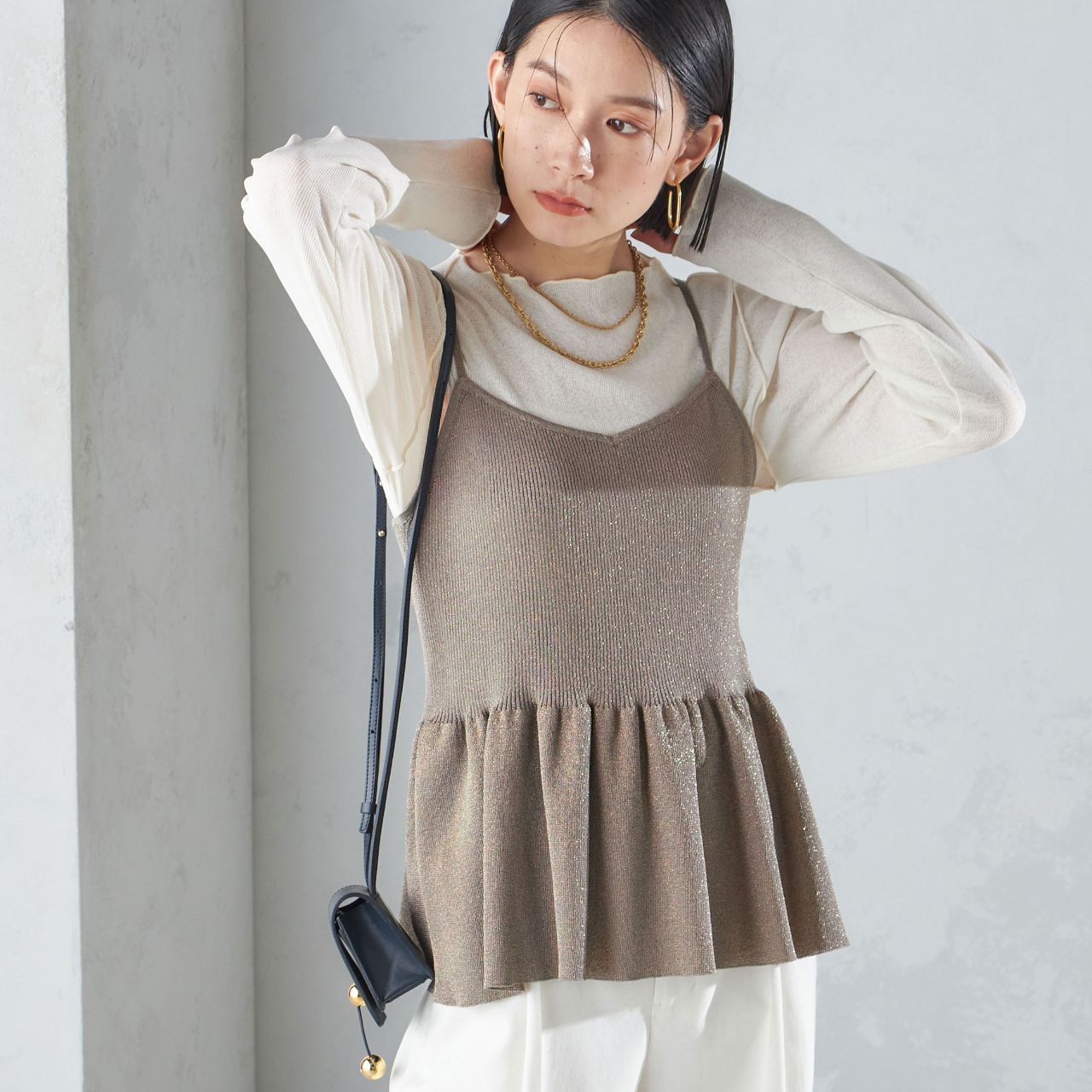〈手洗い可能〉ラメ ペプラム キャミソール |