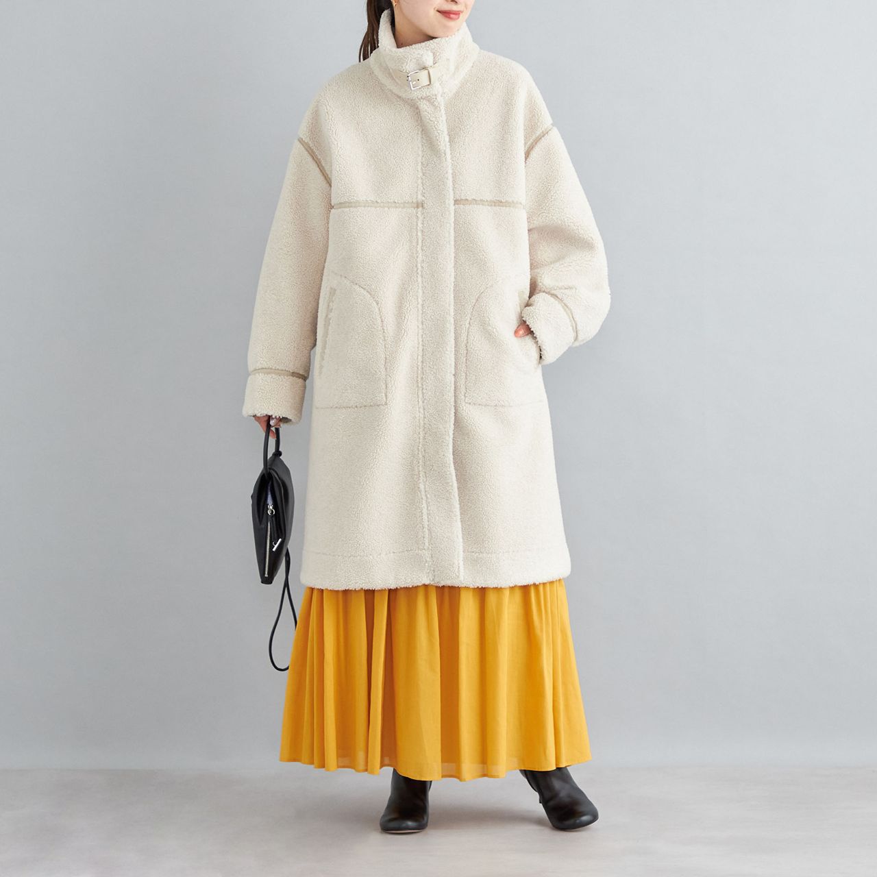 フェイクムートン リバーシブル スタンドカラーミディコート