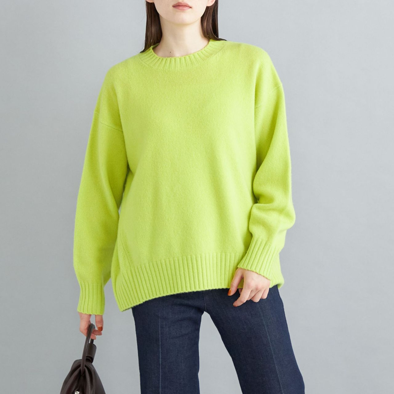 カジュアル見えするゆったりシルエットも、顔回りがすっきりとしたクルーネックが”きちんと感”を演出してくれる一着。