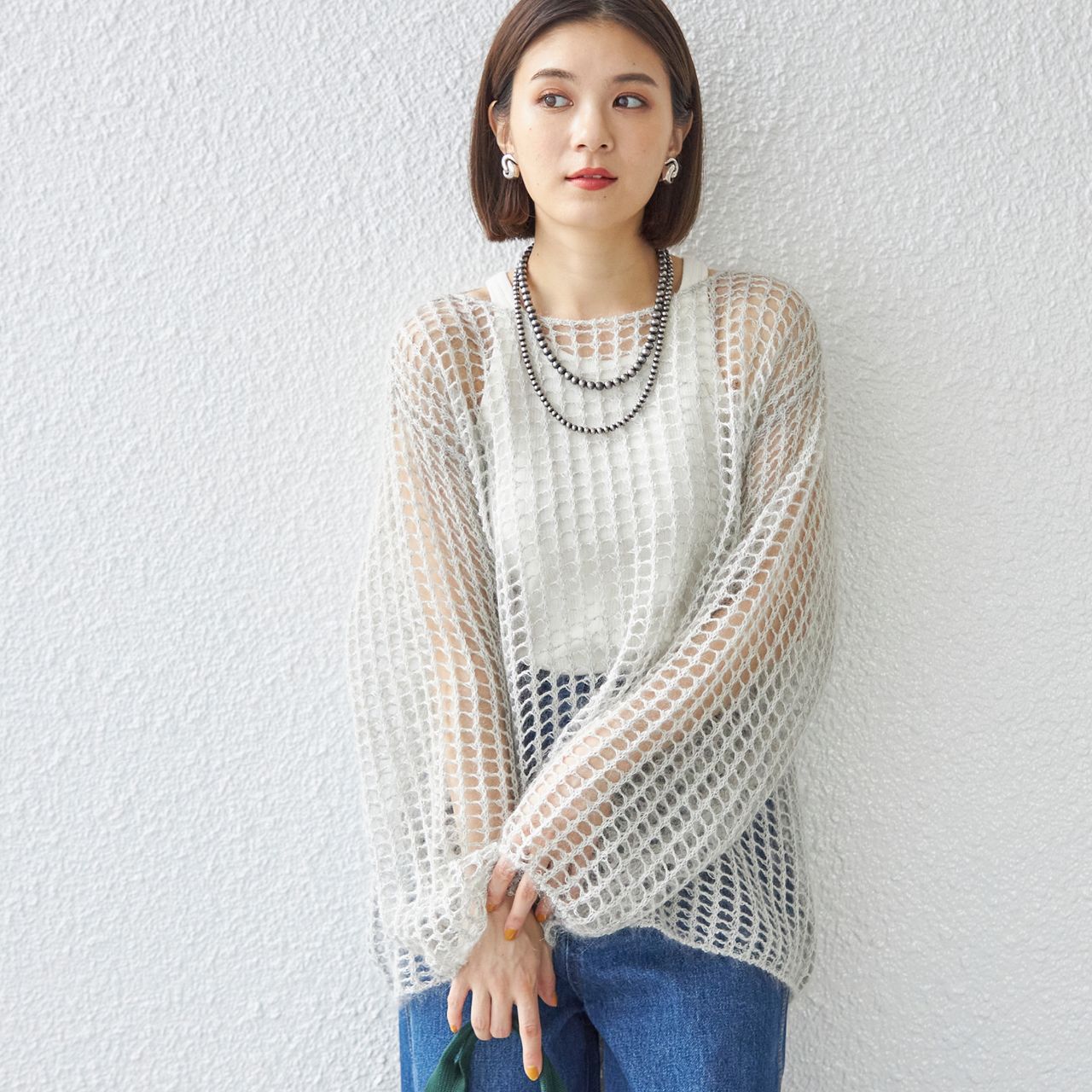 ふわっとエアリーな見た目が、大人可愛いモヘヤメッシュプルオーバー。