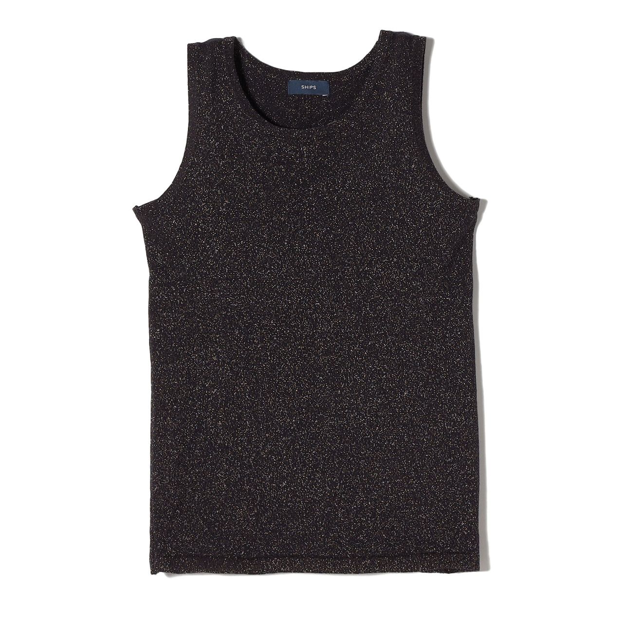 シンプルなデザインにラメ糸が華やぐタンクトップ。