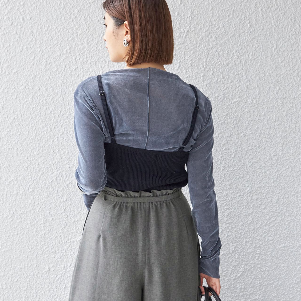インナーにくっつかないので、重ねるだけでこなれ感のあるスタイリングに。