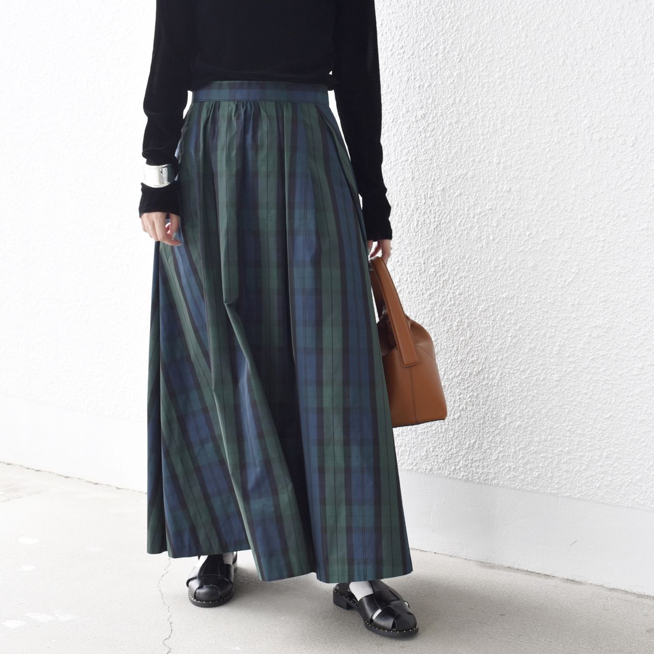 軽やかな素材とSHIPSらしいブラックウォッチが、気分を高めてくれるギャザータックスカート。