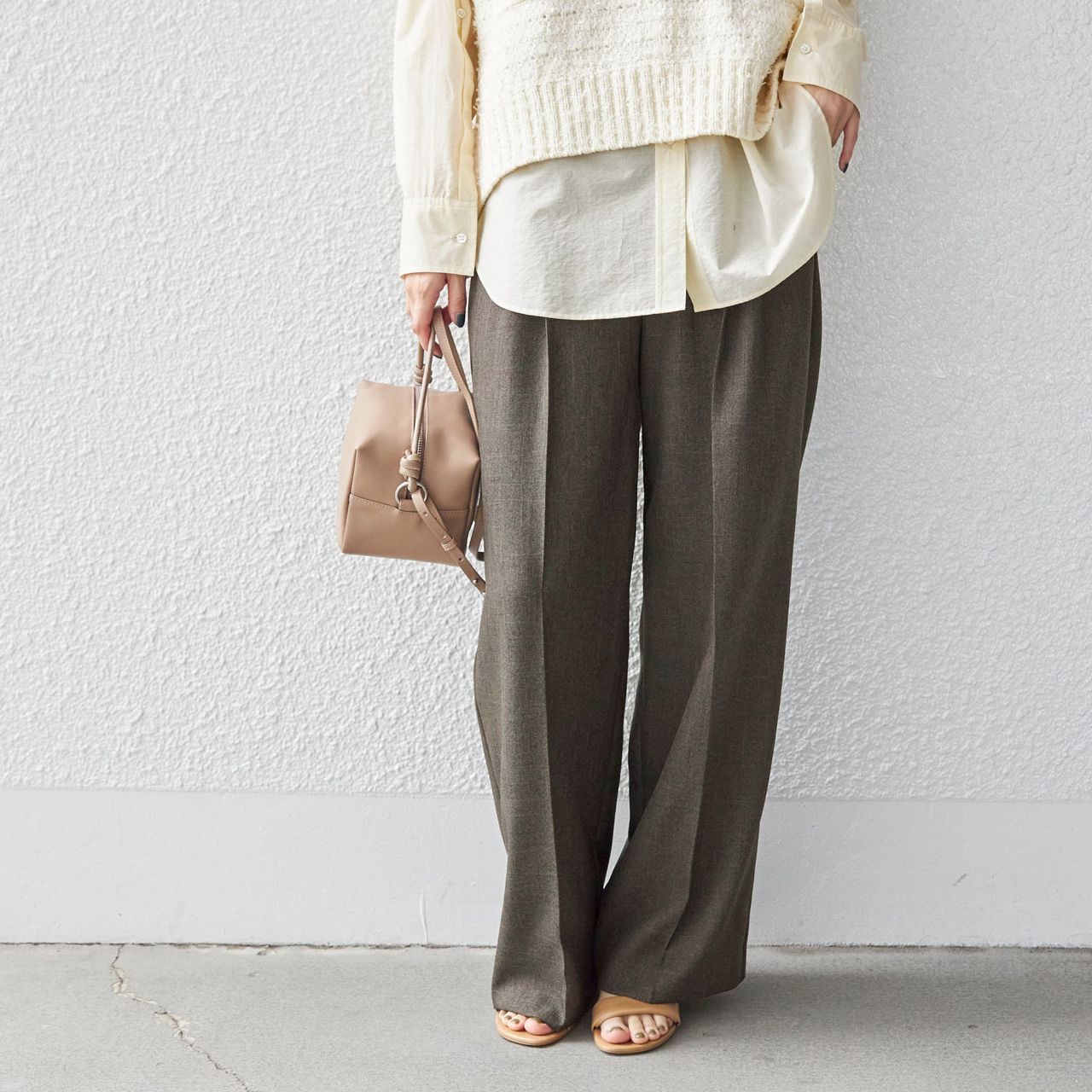 ON/OFF兼用でお使いいただけるセミワイドパンツ。