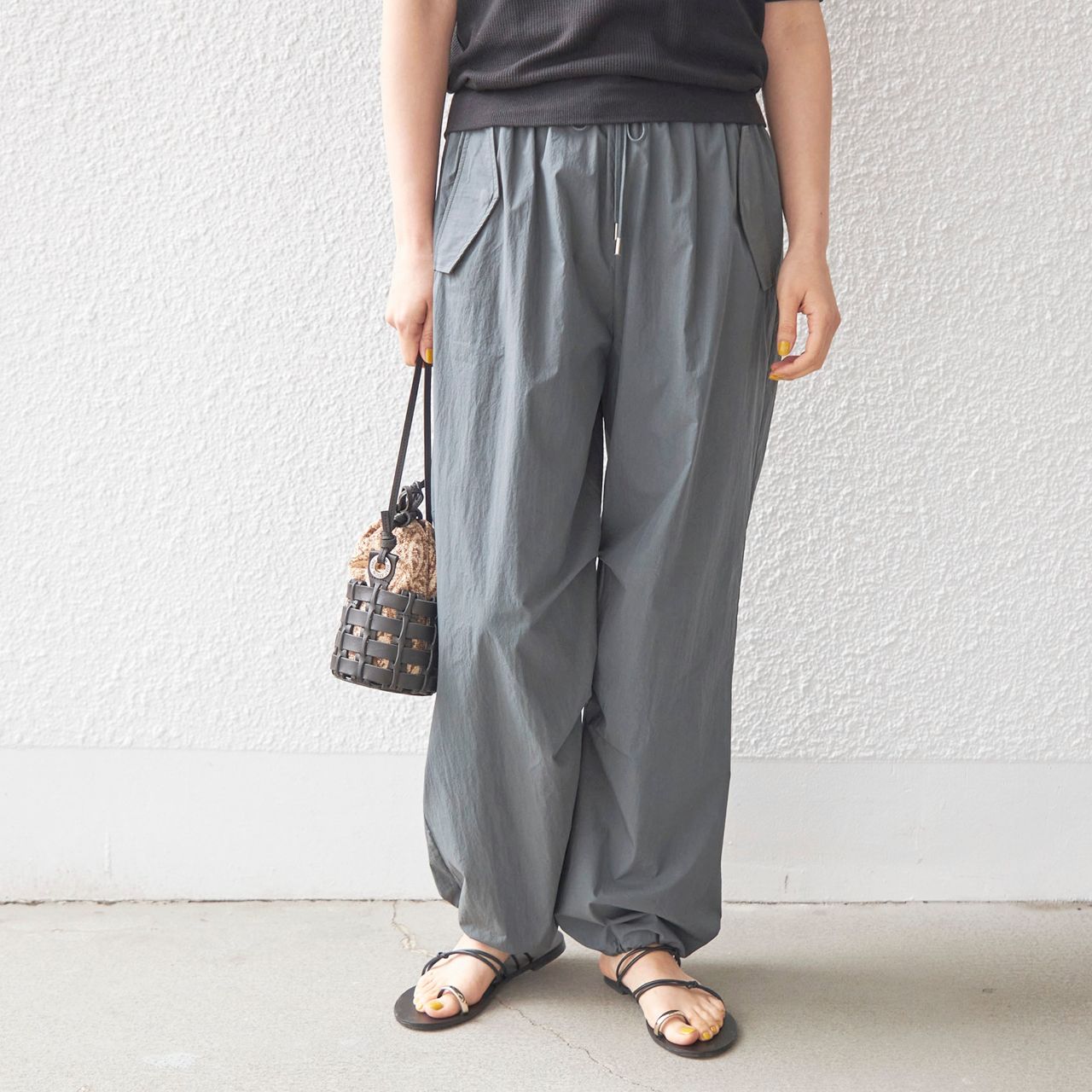 〈手洗い可能〉綿 ナイロン 裾 ドロスト パンツ |