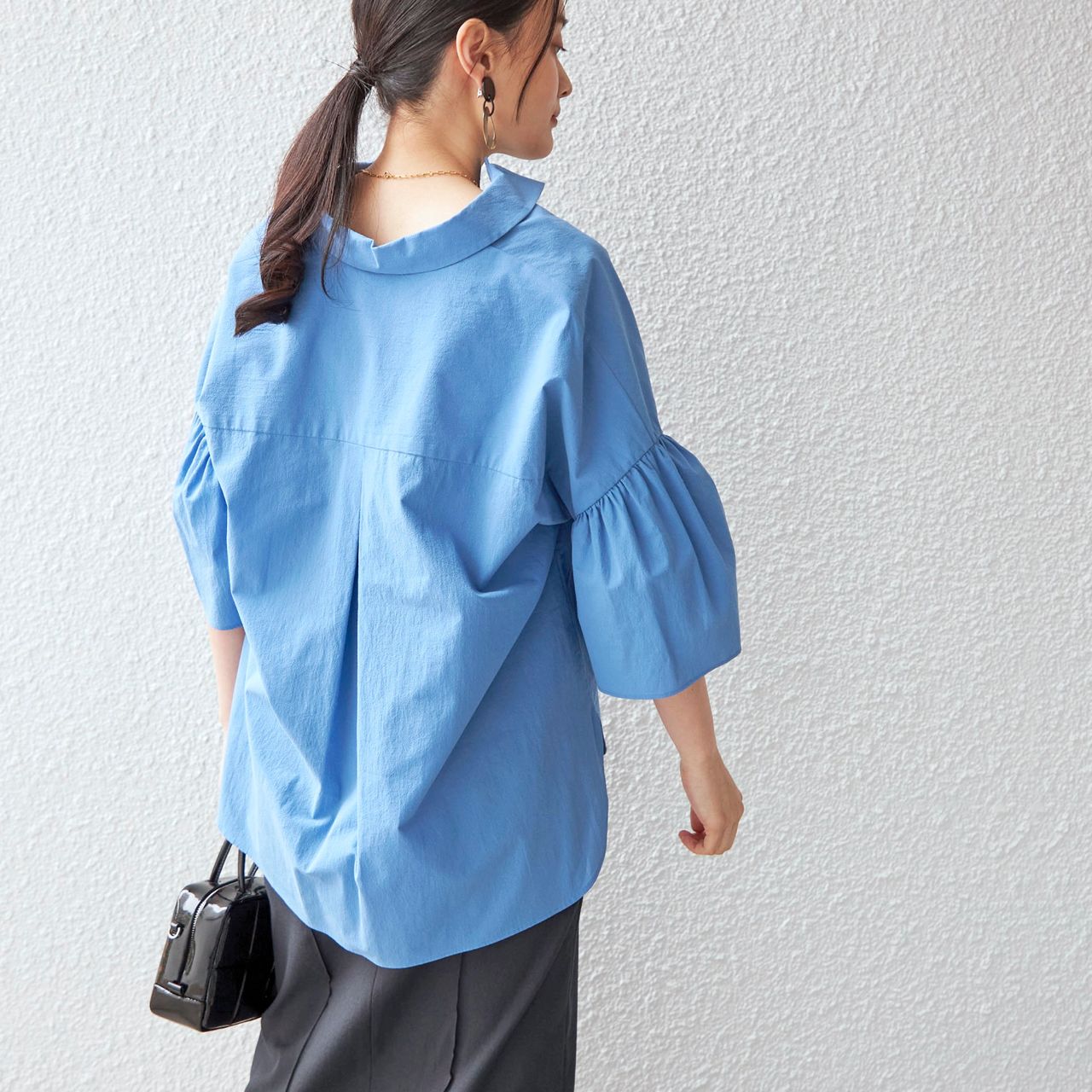 ドロップショルダー、フレアスリーブと女性らしいディテールを詰め込んだ一枚。