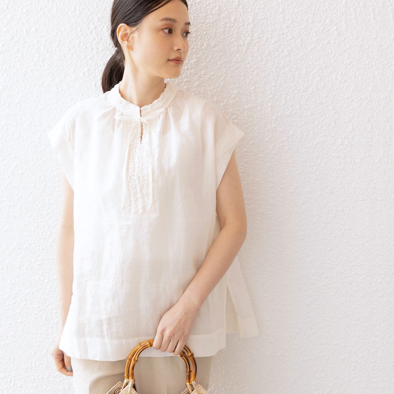 どんなボトムにも合わせやすいベーシックカラーのブラウスは、コーディネートに悩んだ時の強い味方!