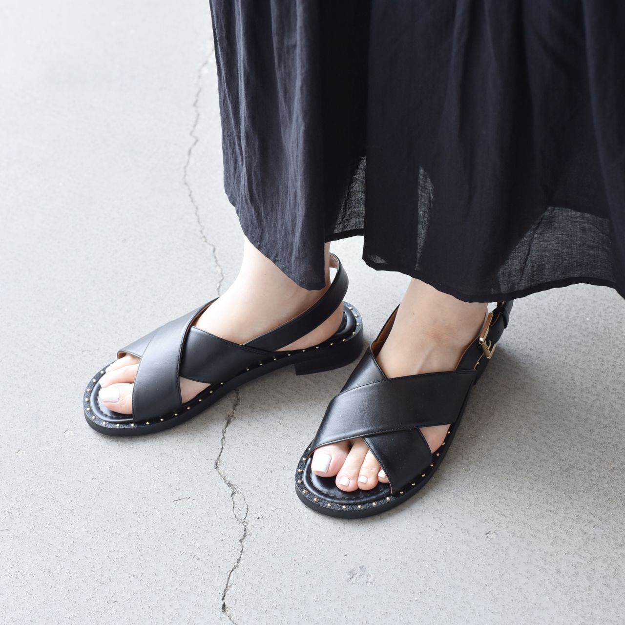 ライトホワイトとブラックのカラー展開が使い勝手の良いクロスストラップサンダル。
