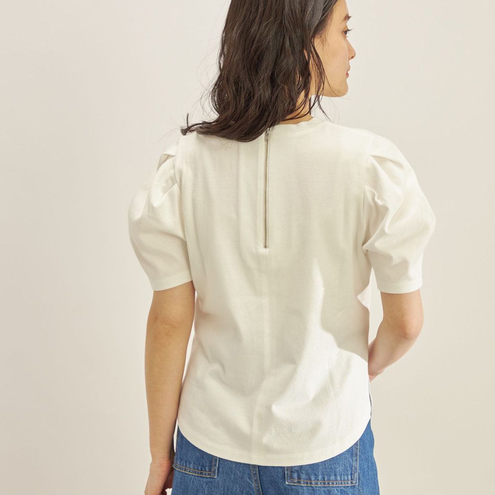 コンパクトな身幅に、ボリュームスリーブがレディライクなカットソー。