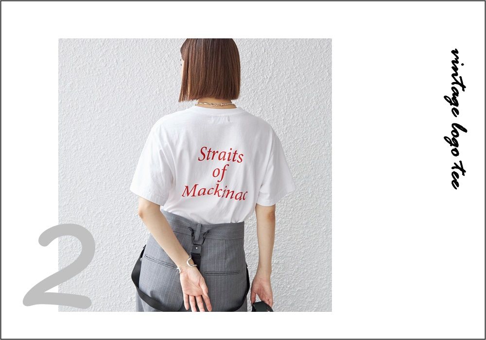 ロゴプリントがアクセントになるTシャツは、コーディネートがシンプルになりがちな夏にぴったり♪