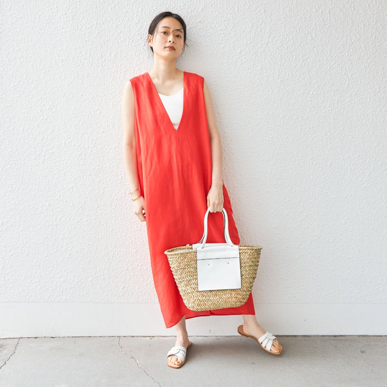 〈手洗い可能〉サフィラン リネン Vネック ワンピース ¥19,910(税込) |