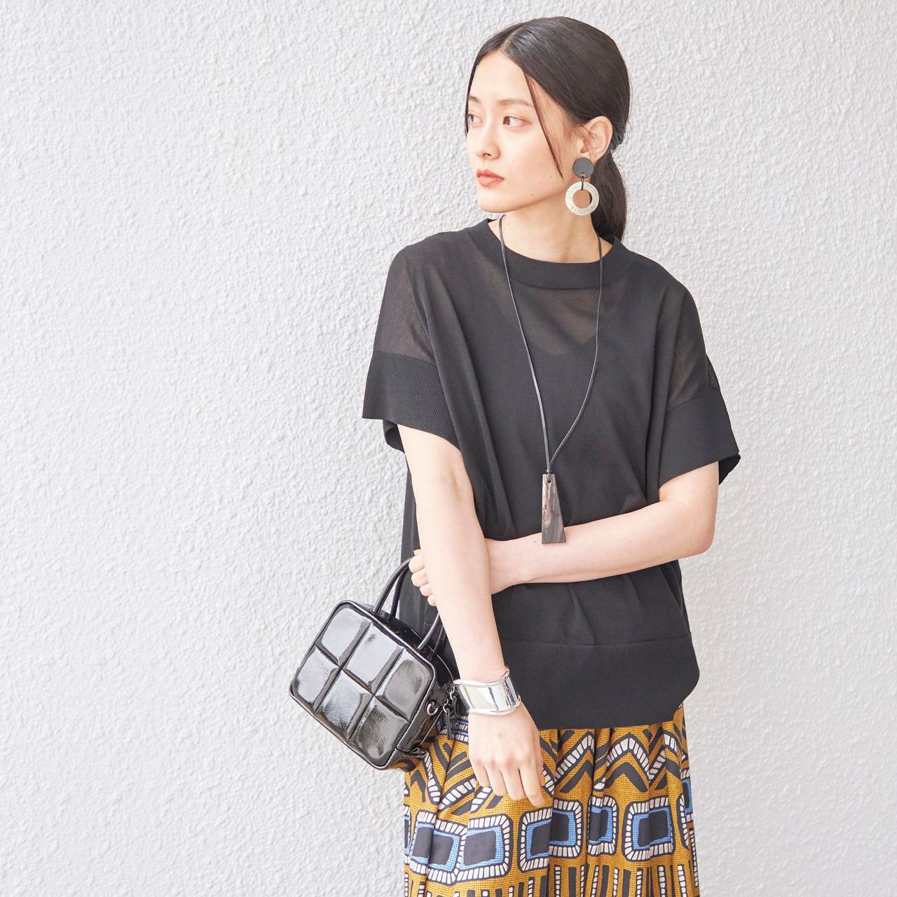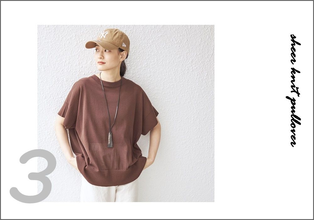 シンプルなトップスも、シアーに変わるだけで洒落感の出る一着。