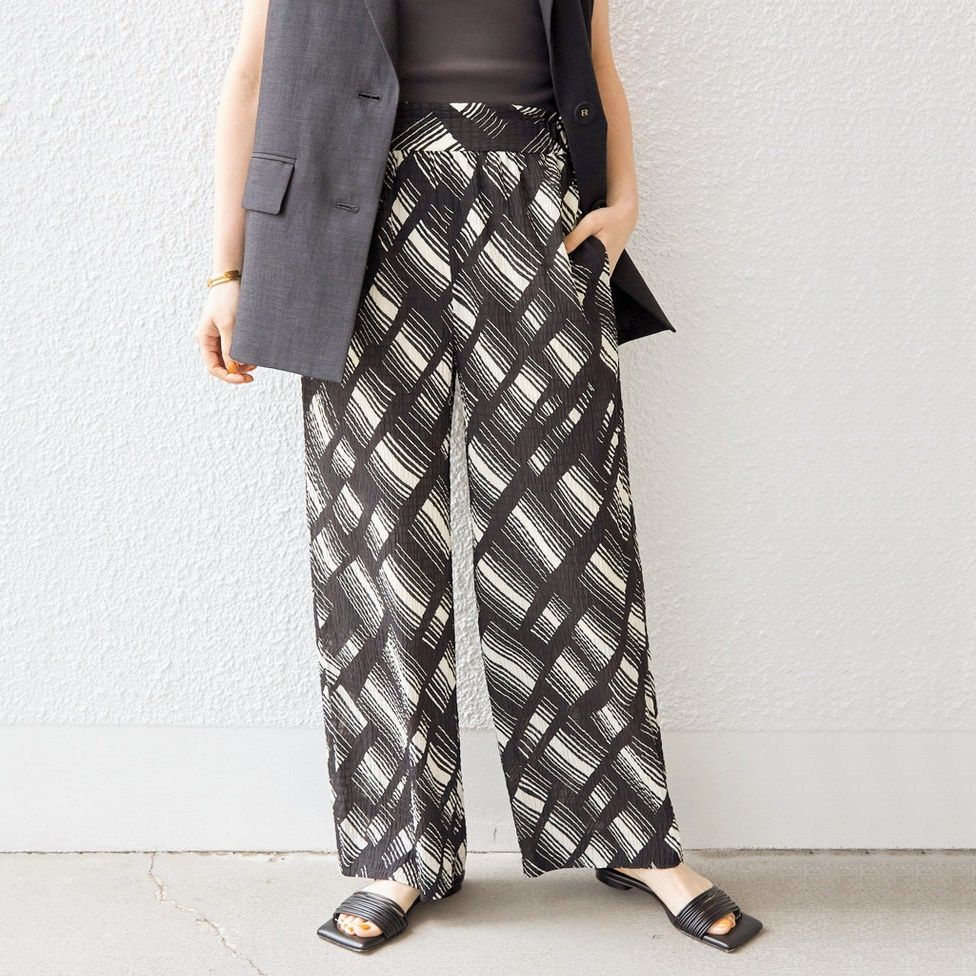 〈手洗い可能〉Deveaux モノトーン プリント パンツ |