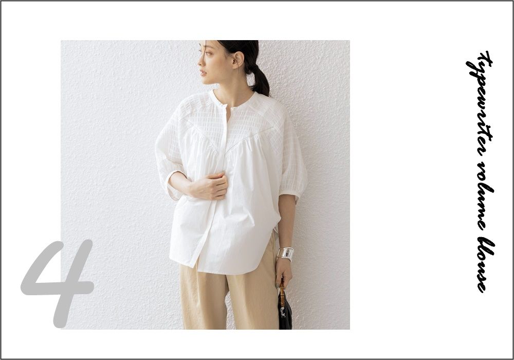 ふんわりとしたボリュームのあるデザインが、大人可愛いタイプライターブラウス。