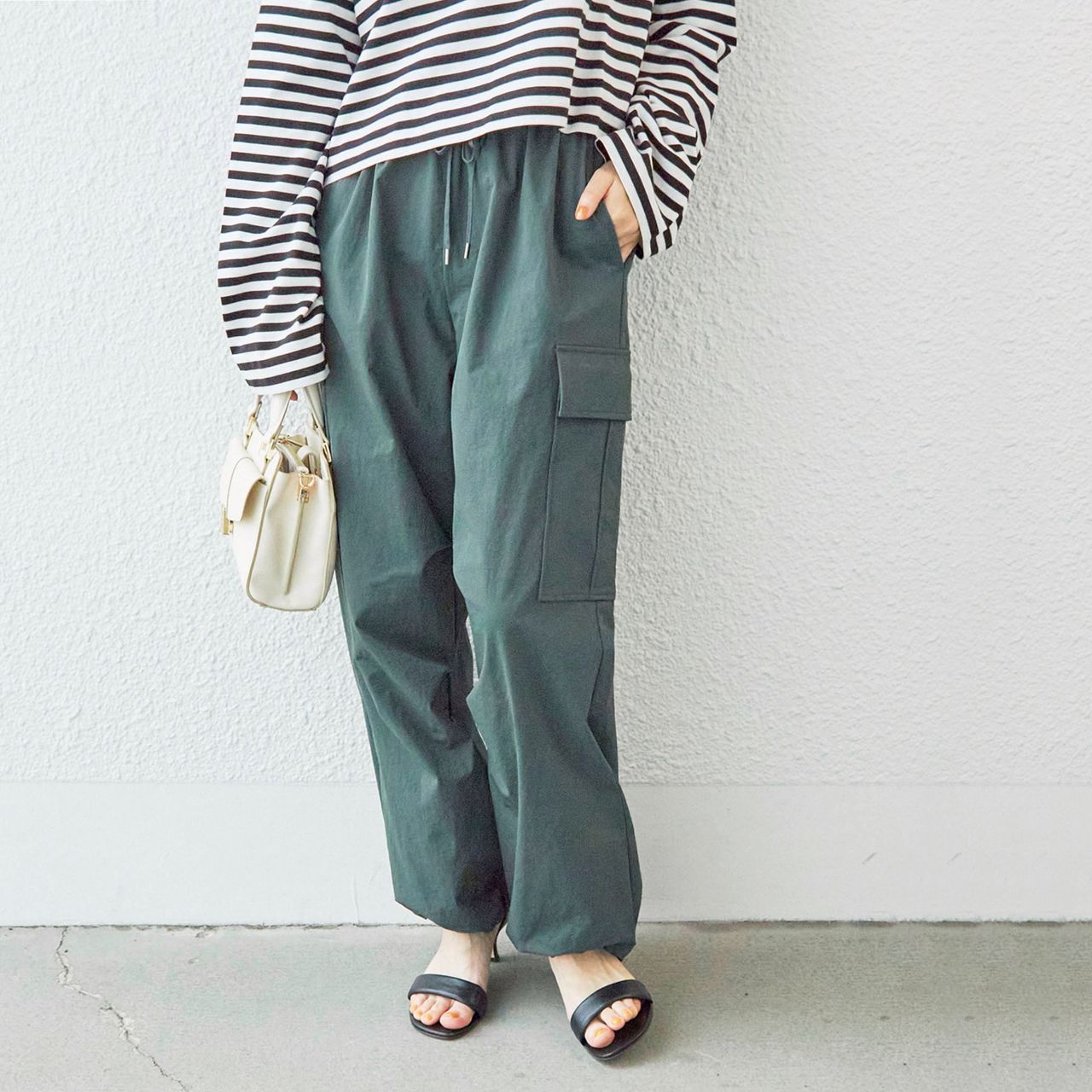〈手洗い可能〉ナイロン ツイル 裾 ドロスト カーゴ パンツ ¥17,930(税込) |
