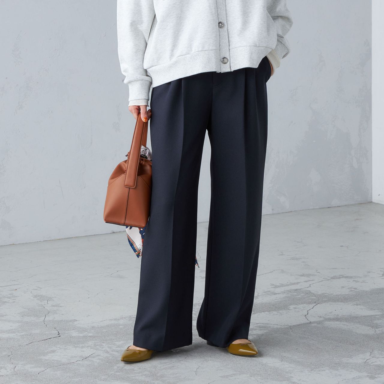 ON/OFF兼用で使えるセミワイドパンツ。