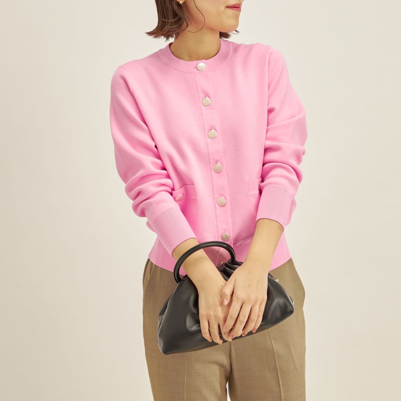 〈手洗い可能〉コットン 配色 メタルボタン カーディガン