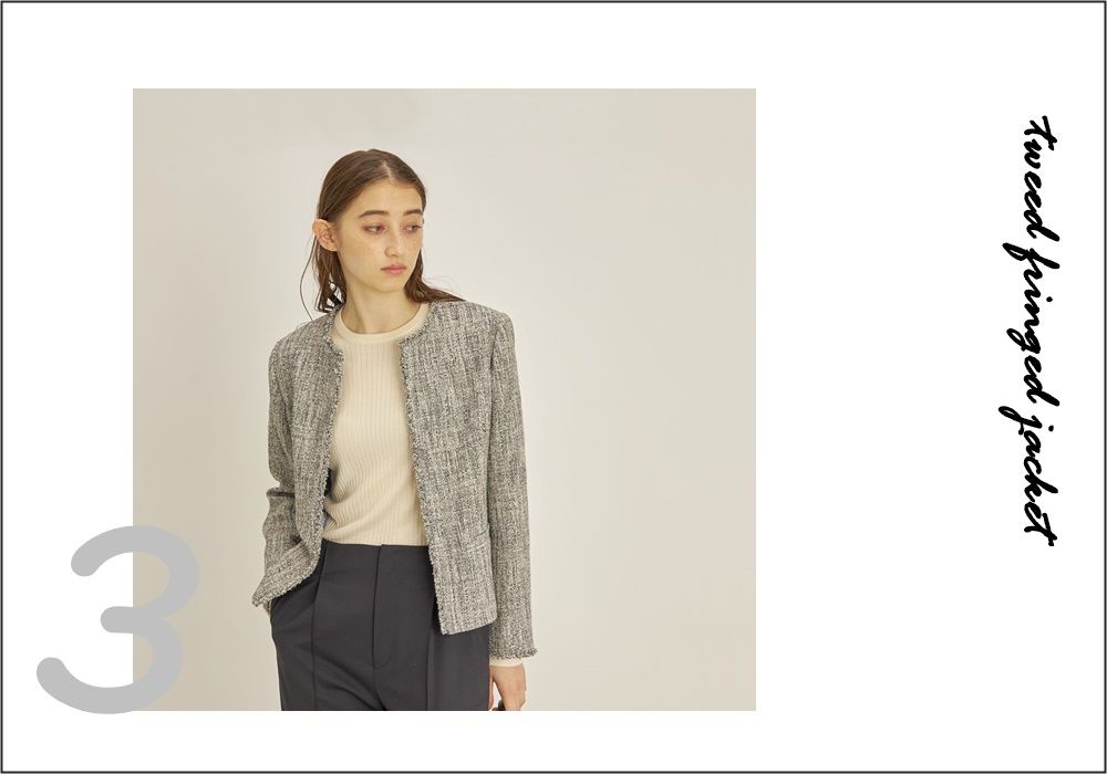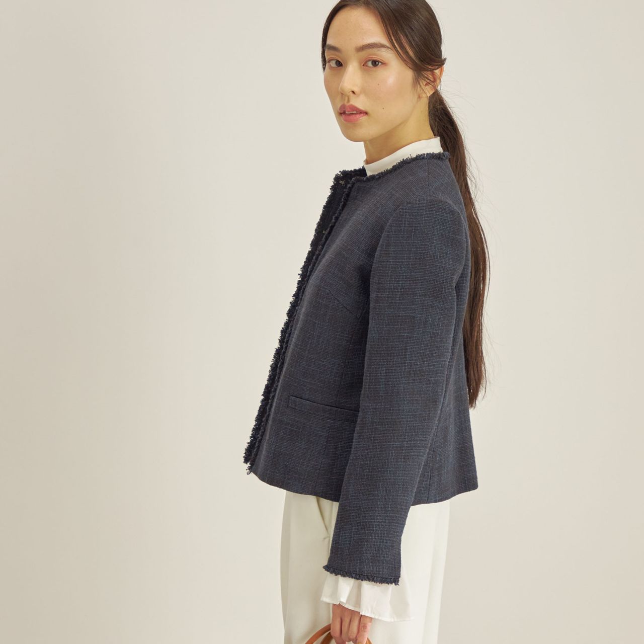 コンパクトなシルエットで、きちんと感と上品さを兼ね揃えたツイードジャケット。