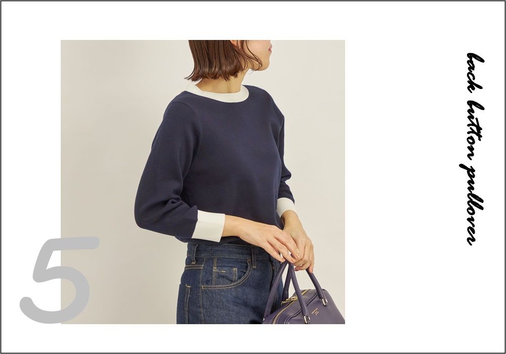 〈手洗い可能〉コットン 配色 バックボタン プルオーバー
