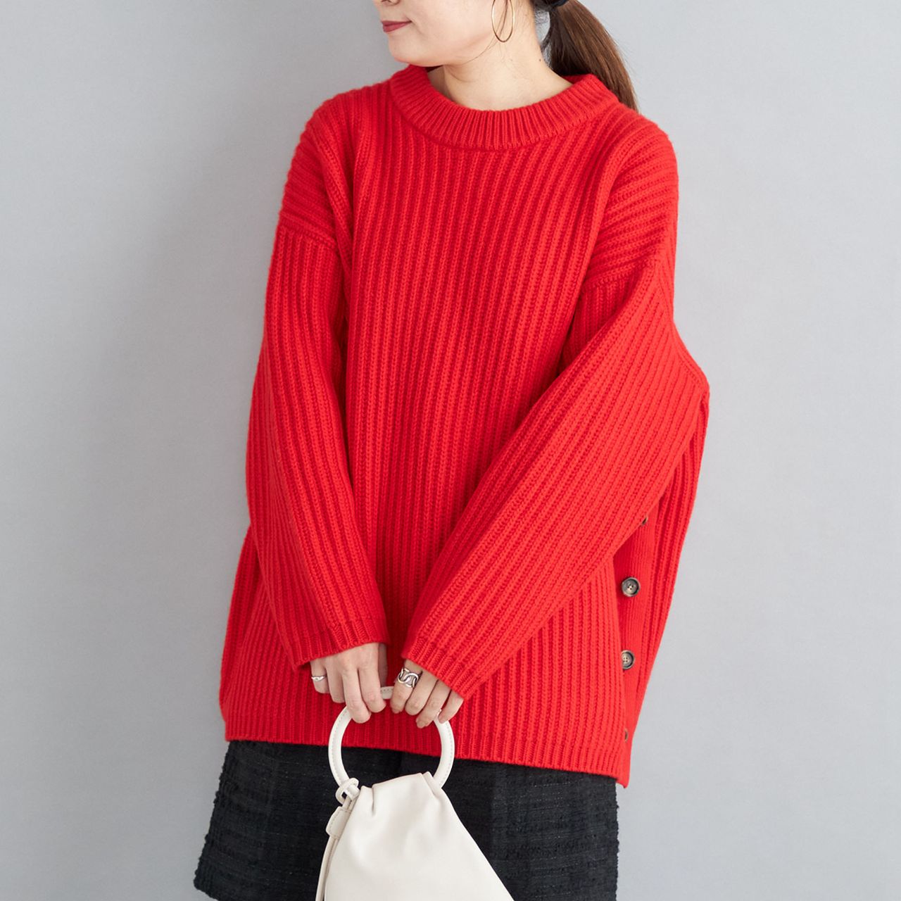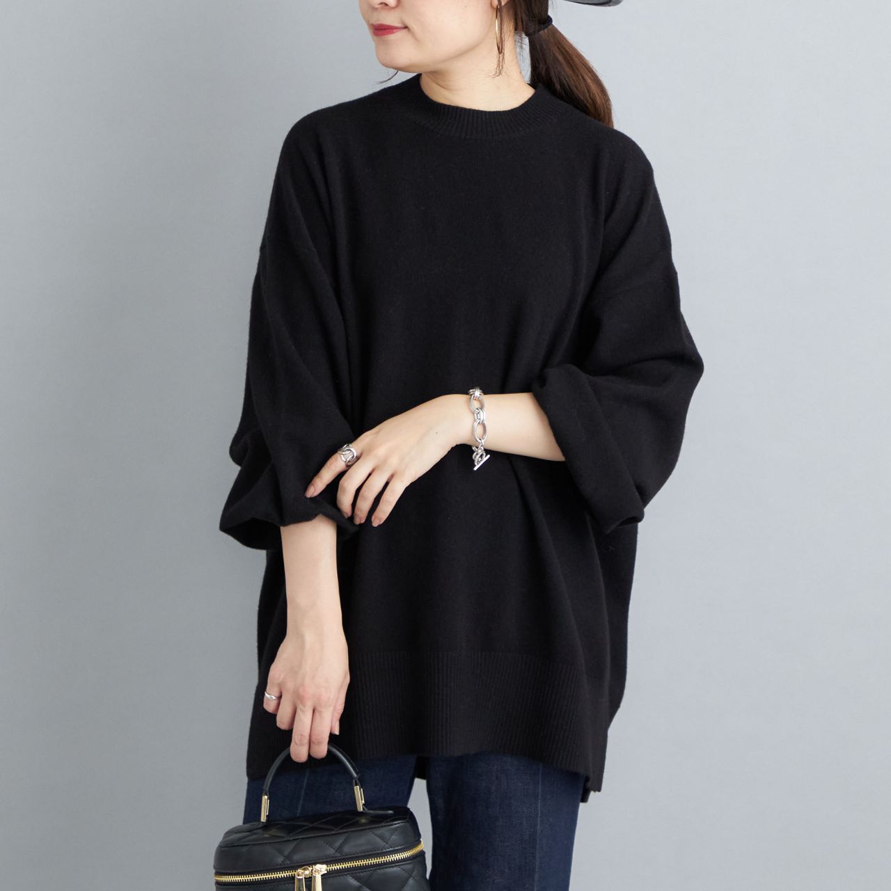 ニット自体は軽いのとゆったりなサイズなので、中にインナーを挟んでも余裕があります◎
