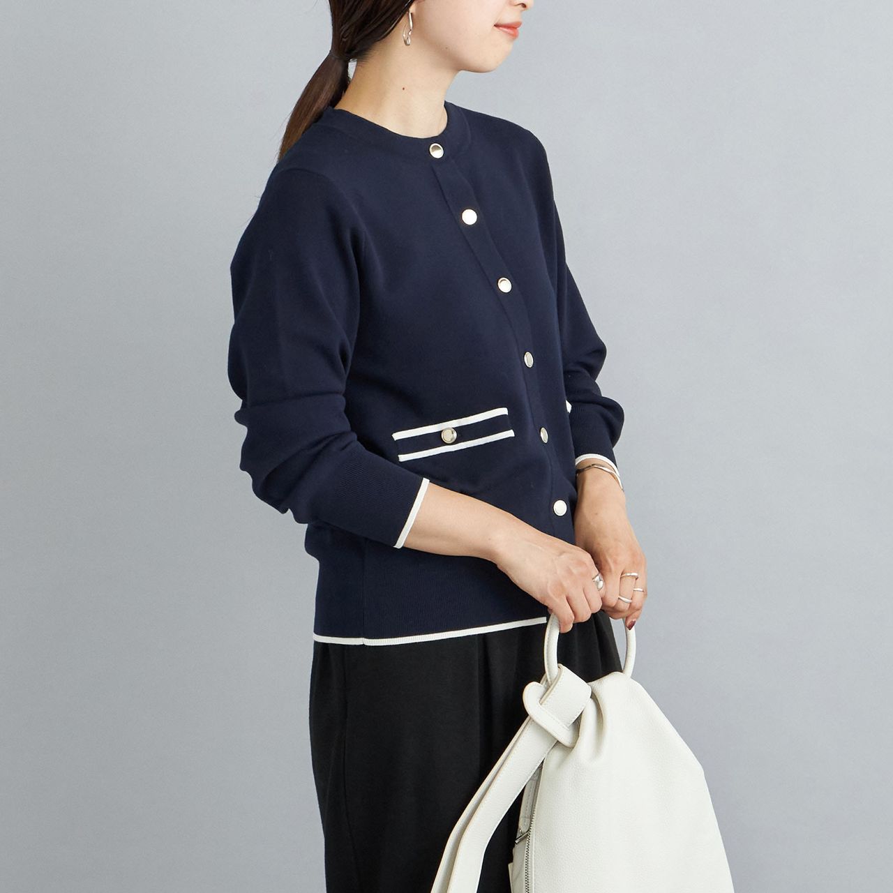 昨年春にも人気だった、ラインの入ったニットとカーディガン!