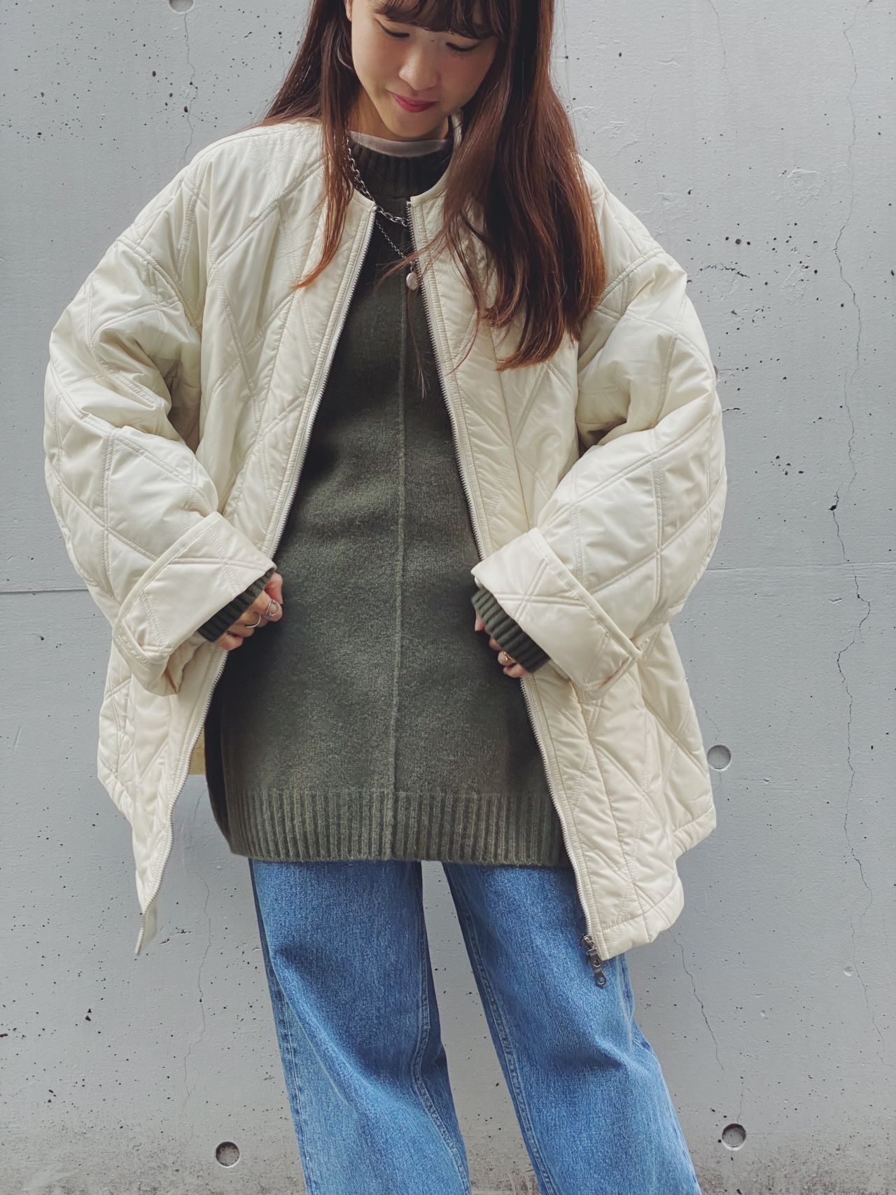 キルティングのコートってオリーブとか